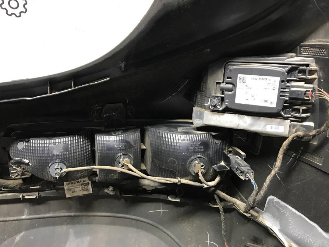 Оригинал. Под парктроники и датчики мертвых (слепых) зон. Цена указана без комплектующих. Имеются мелкие вмятины на левой стороне, трещины на хроме по центру