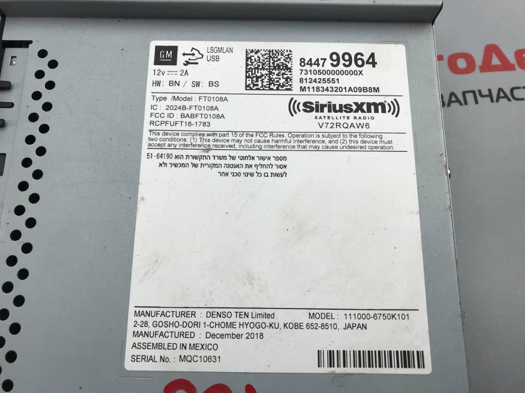 ![блок радио Chevrolet Malibu 9 поколение [рестайлинг] 2019, 1.5 л., бензин, АКПП, 84479964 - фото №6](https://static-site.fsn1.your-objectstorage.com/dc8fc5ed-0123-40cd-b6b7-5ba52e7b71a8/version/car-part/97428/1491989/preview.jpg)